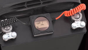 The Battery Bug comes equipped with universal "Y" connectors that can be easily attached to most battery posts or clamps. The Battery Bug can also be attached to remote battery terminals without significantly affecting test results. It's engineered tough to survive under the hood, and the coiled cables let you place it up to 18 inches away from the battery. The Battery Bug consumes very little power--about the same amount as your vehicle's digital clock--and will not adversely affect battery performance. The Battery Bug can also be attached to two batteries in parallel, and the preferred installation is to attach it diagonally across the pack. The black wire should attach to the negative post at one end of the pack, and the red wire should attach to the positive post at the other end of the pack.