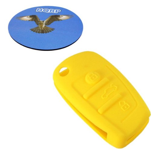 HQRP Key Fob for Audi TT Q7 R8 RS4 Yellow Folding Flip CaseShell Remote Protective Cover + HQRP Coaster