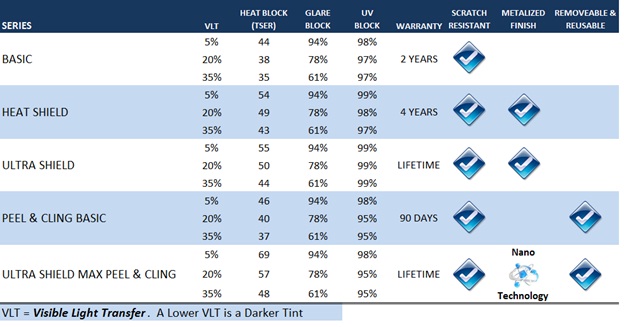 Gila exclusive patented Nano particle technology, special process incorporates metalized PET performance into a PVC backed tint for maximized heat rejection performance and easy installation. The easiest to apply, highest heat blocking window tint in the marketplace. Static cling application - no adhesives. Can be removed and re-installed. Made in USA.