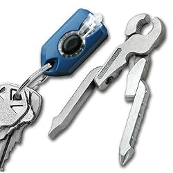 The new, sleek design of this patent-pending, ultra-bright LED flashlight has improved functionality, and an attractive Micro-Light Docking Station and tool integrated into one convenient package. The tool makes minor repairs, assemblies, installations, and hundreds of jobs an easy undertaking. The patented quick-release self-locking jaws keep this tool tightly secured to any key ring.