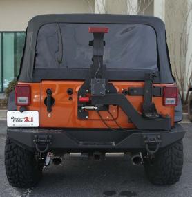 Tired of going off-roading and having to first unscrew the latch on your tire carrier to gain access to your tailgate? Rugged Ridge has the perfect solution for you with this new tire carrier which maintains full mobility of the rear tailgate and eliminates the cumbersome two-stage opening process present in other designs. Using the factory latch mechanism and a reinforced spindle, Jeep owners have the ability to mount up to a 37-inch tire and operate both the carrier and tailgate simultaneously without any hassle. The Gen II Swing and Lock Tire Carrier also features an adjustable saddle that is fully compatible with Rugged Ridgeâs existing line of XHD rear bumpers (Part #s 11546.20 and 11547.01) that operate as easy add-on components, no drilling required.
